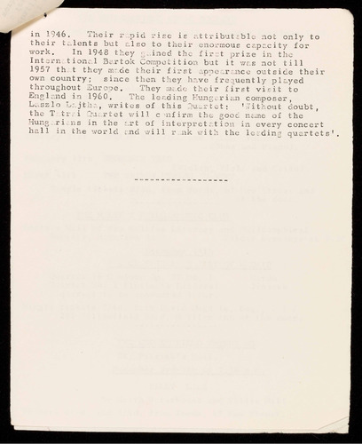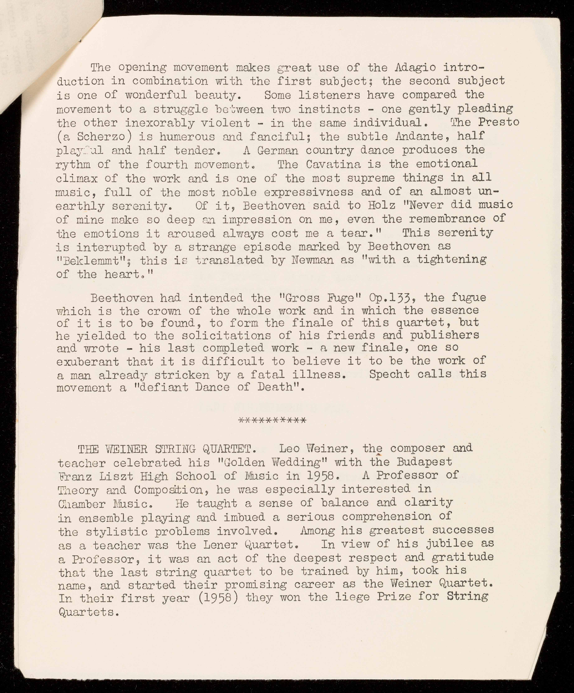 THE WEINER STRING QUARTET. Leo Weiner, the composer and
