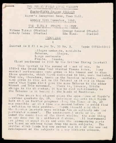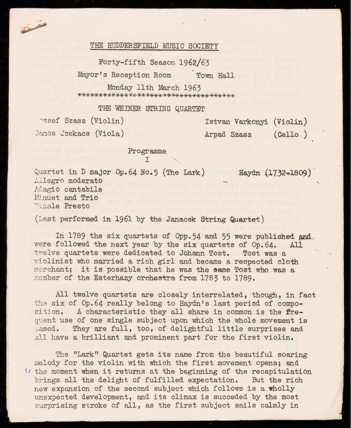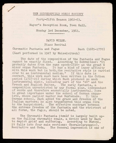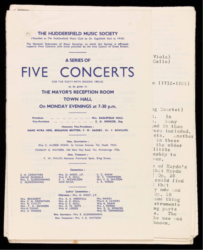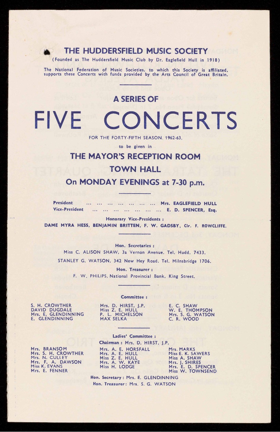(Founded as The Huddersfield Music Club by Dr. Eaglefield Hull in 1918)