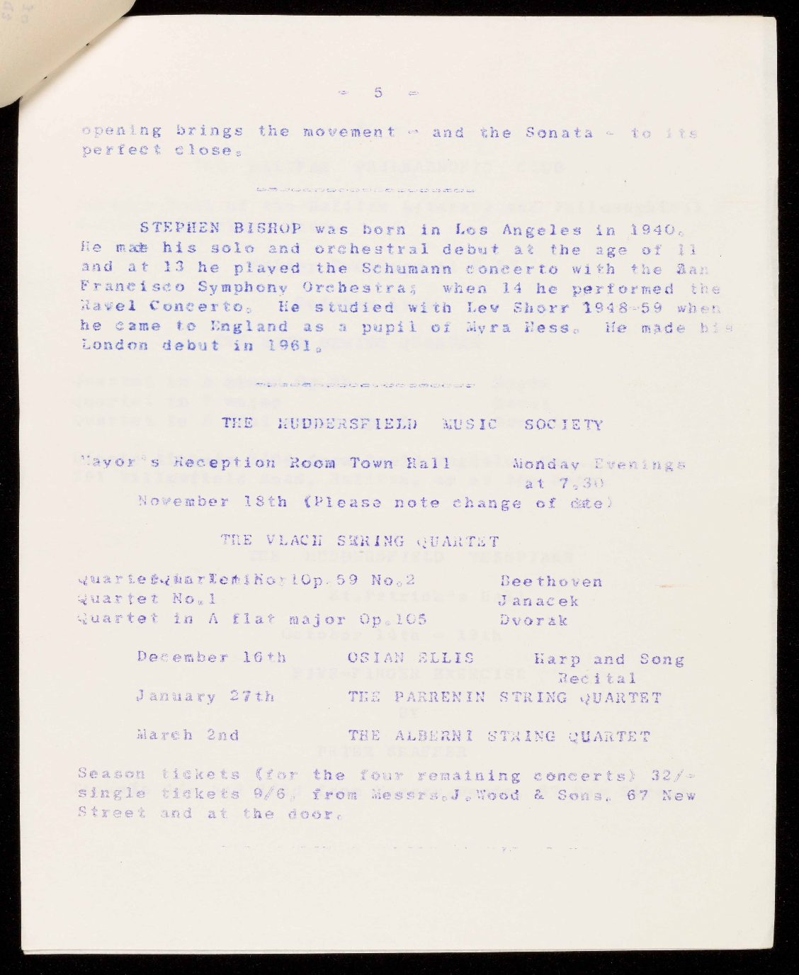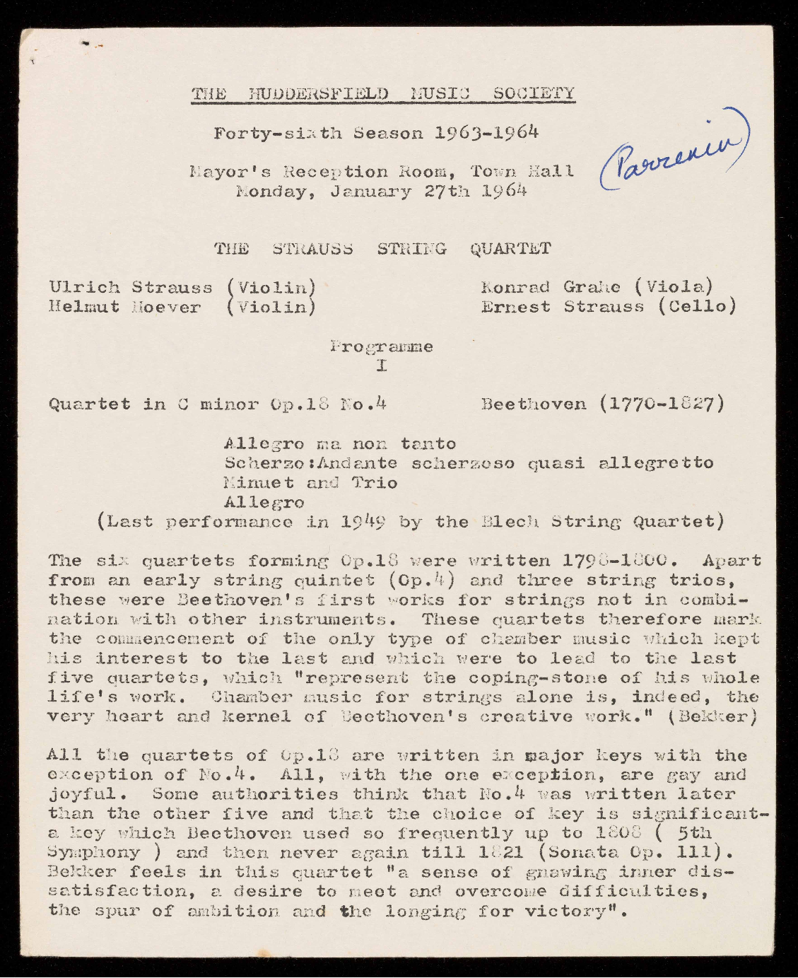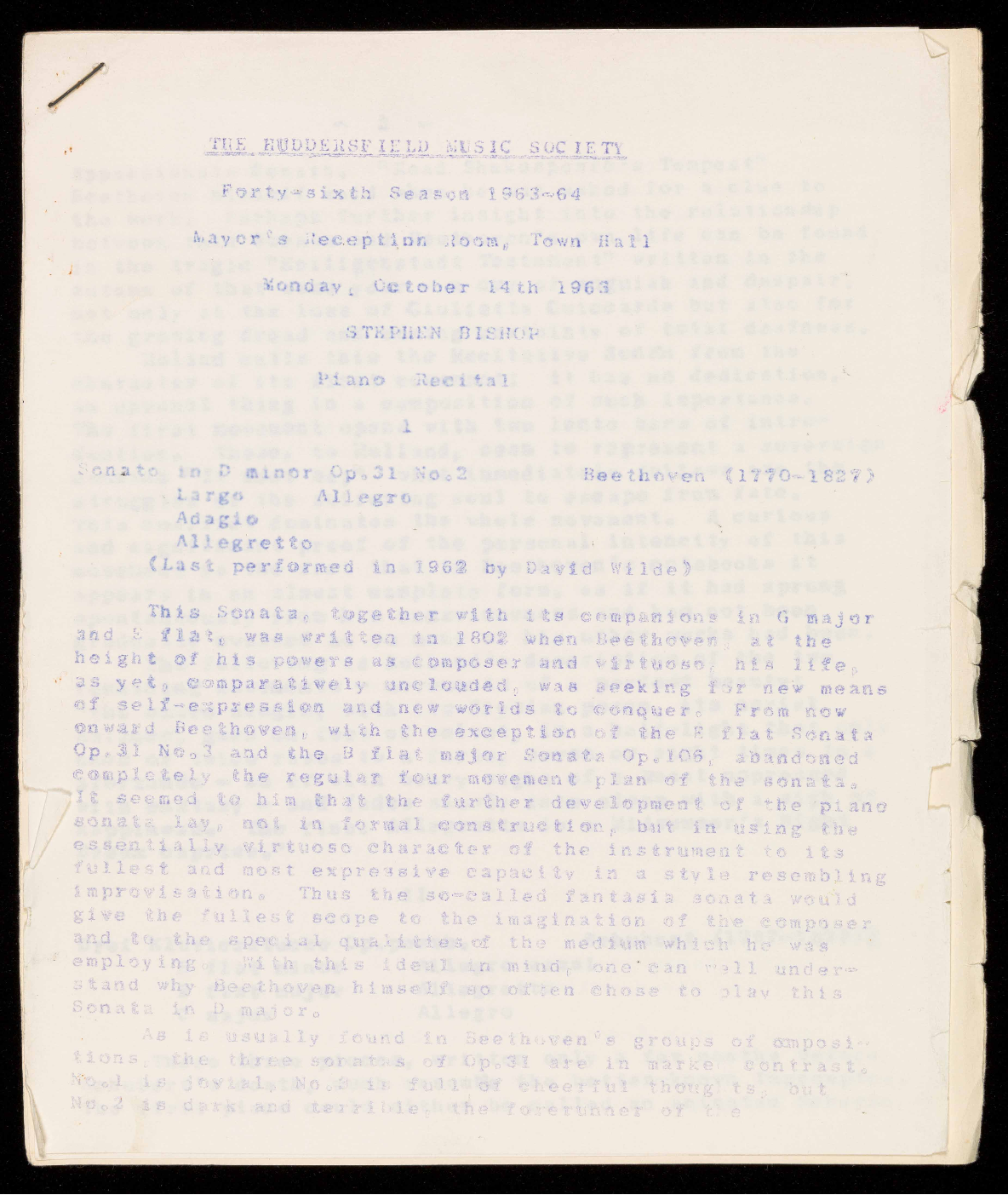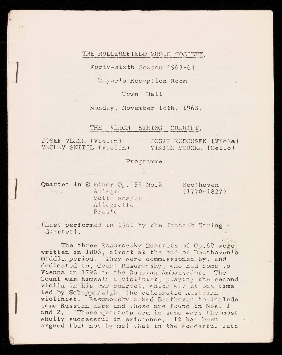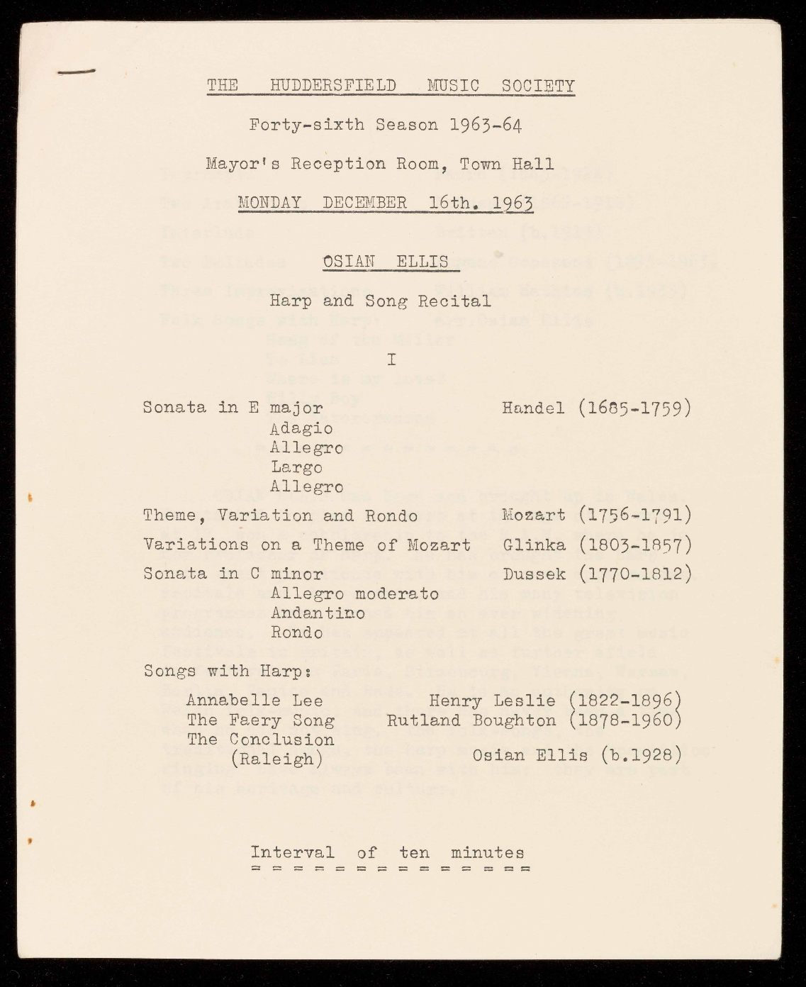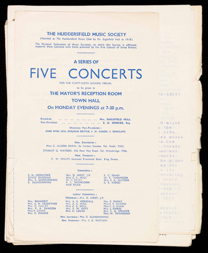 (Founded as The Huddersfield Music Club by Dr. Eaglefield Hull in 1918)
