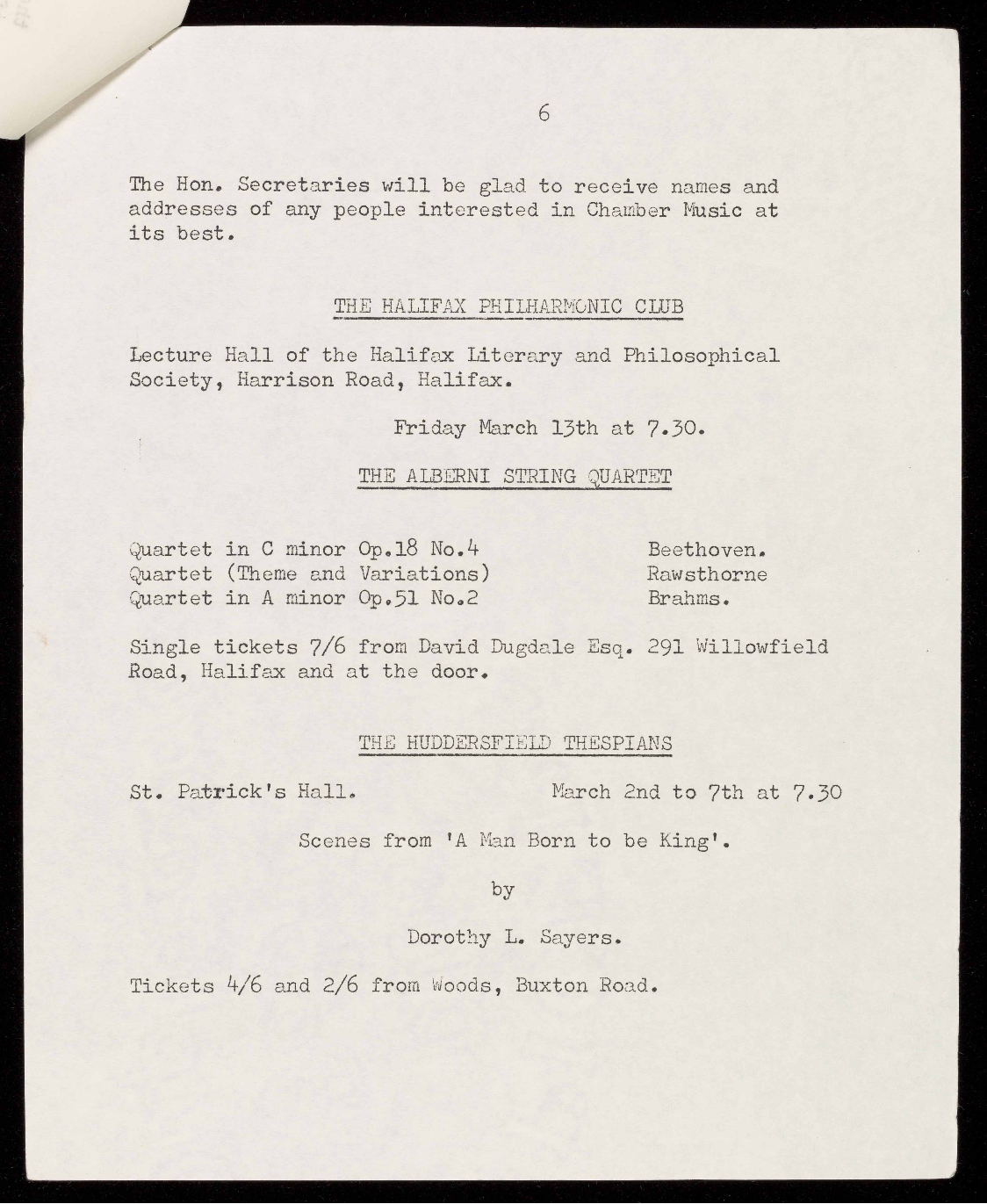 Road, Halifax and at the door.