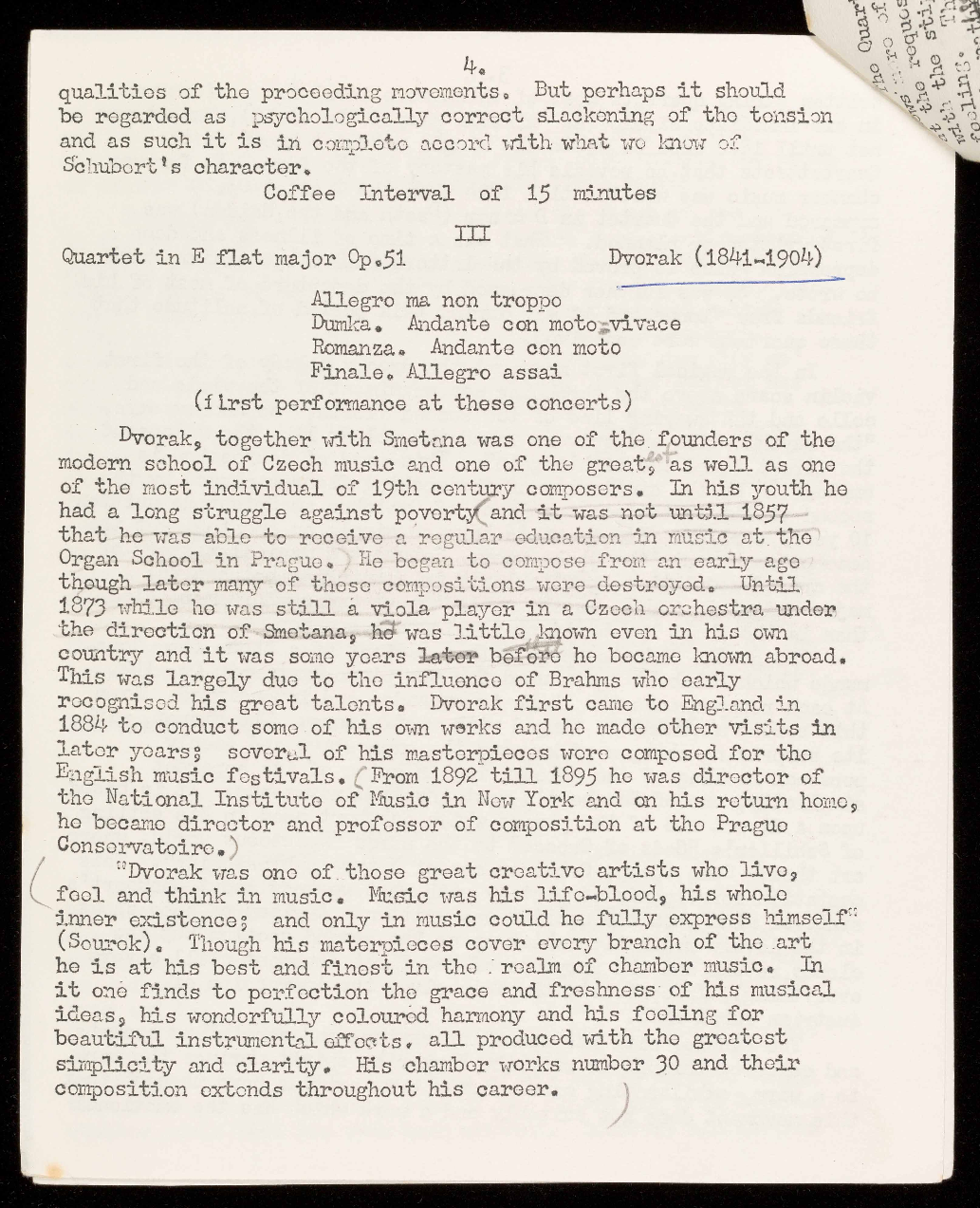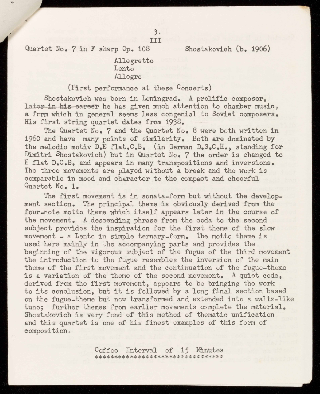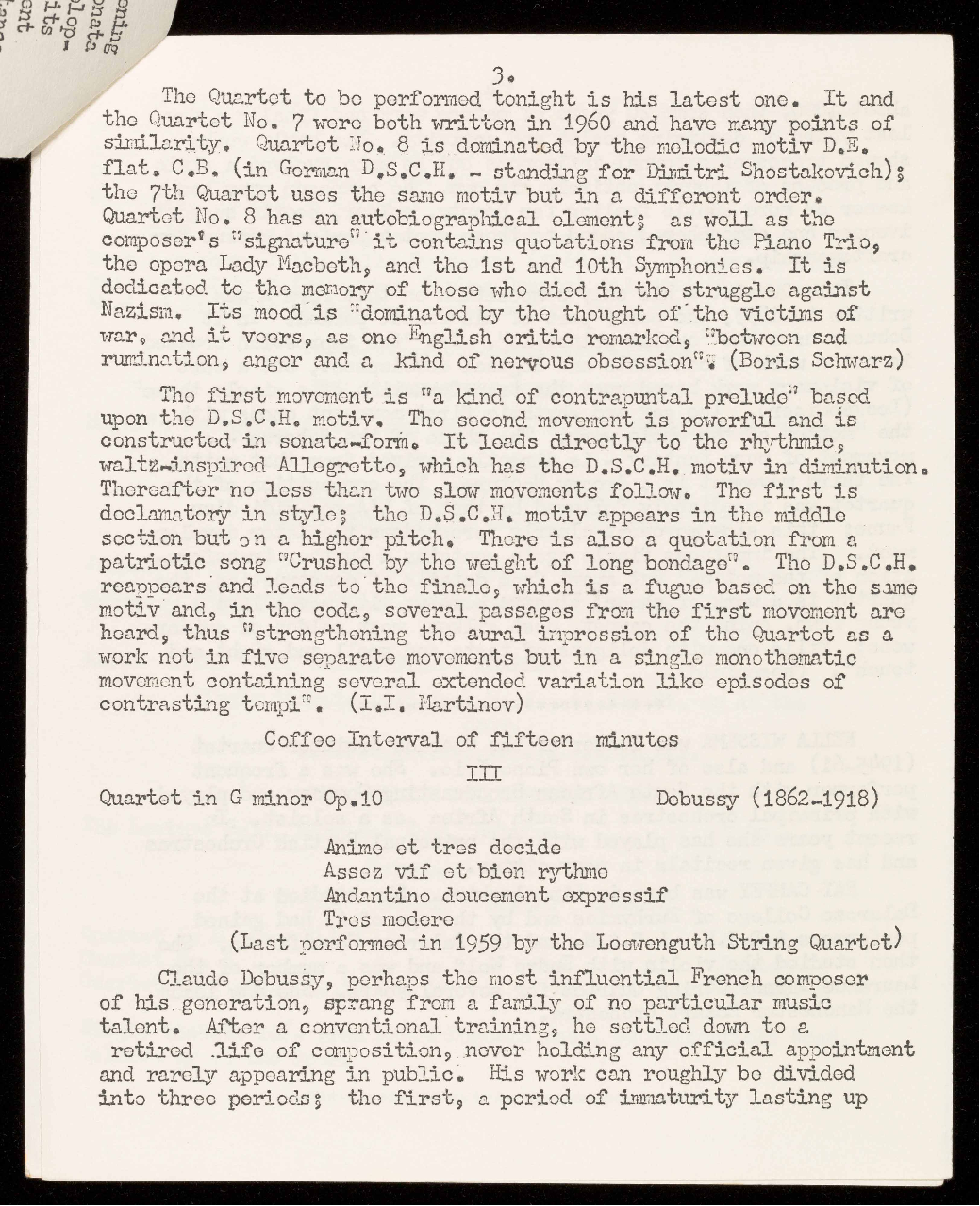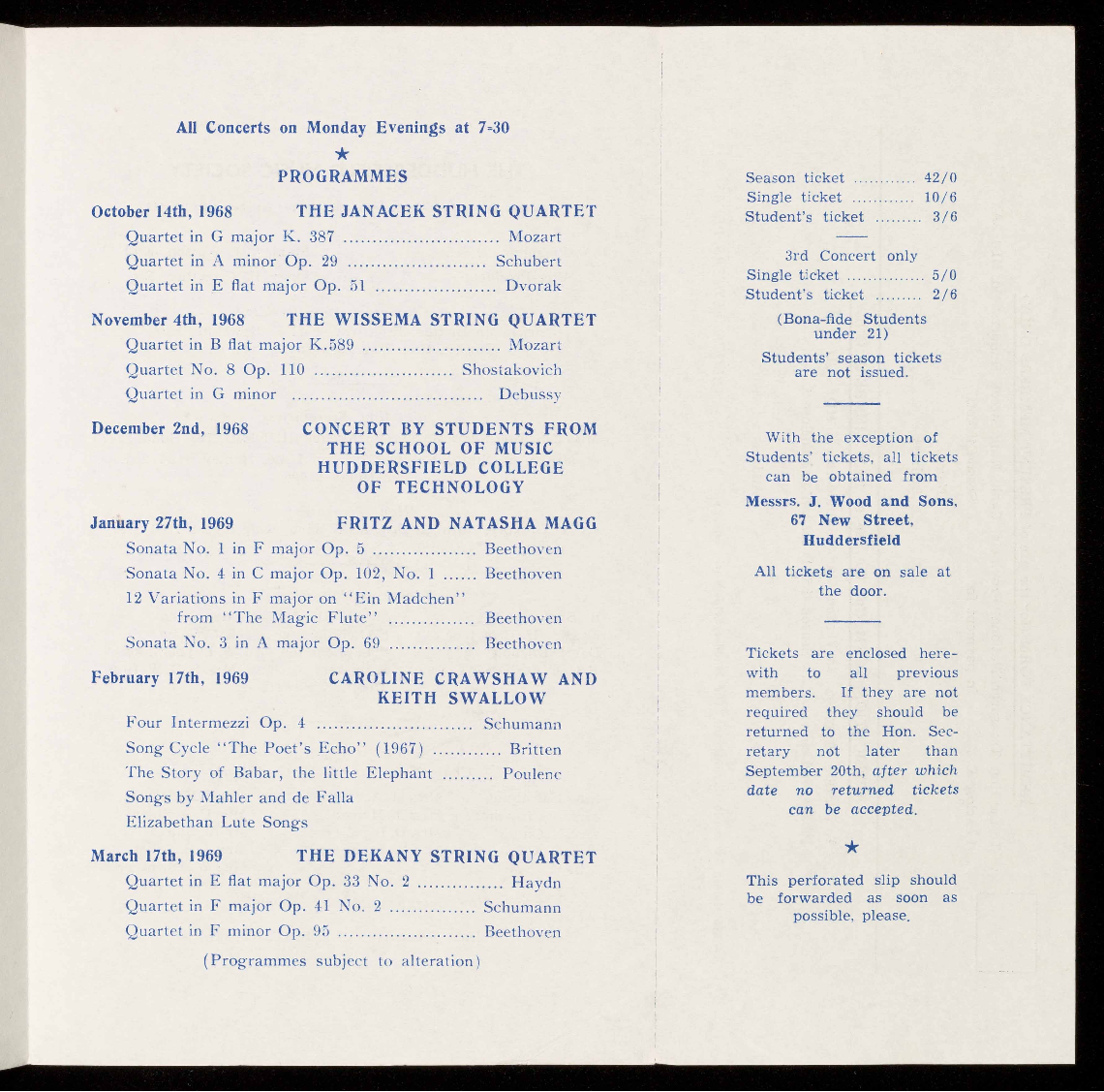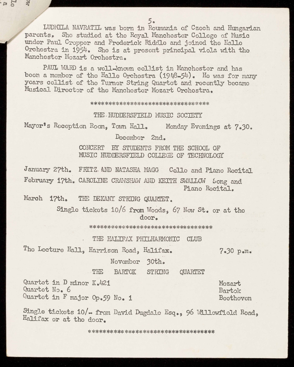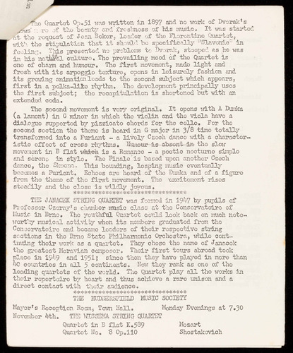 November 17th. THE TALICH STRING QUARTET. First appearance at