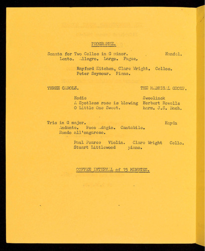 December 15th. STUDENTS OF THE SCHOOL OF MUSIC, COLLEGE OF