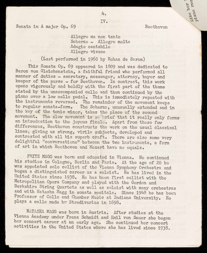 at these concerts in a Recital for Cello and Piano. Both are Viennese