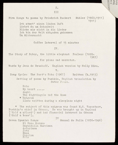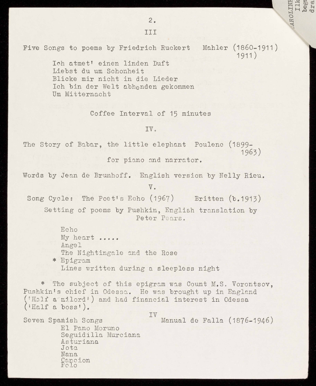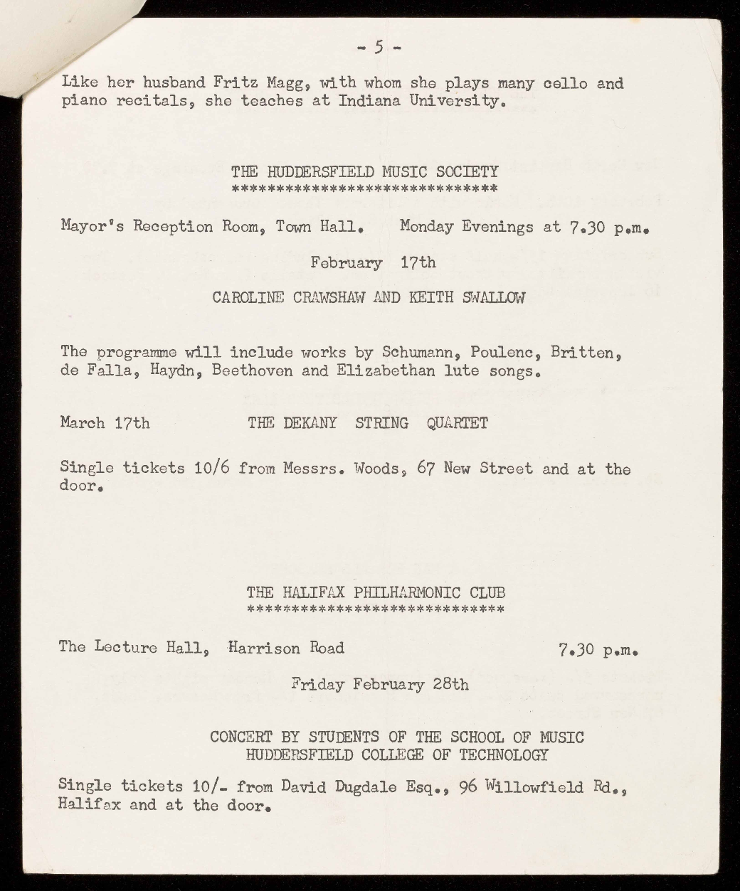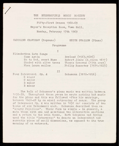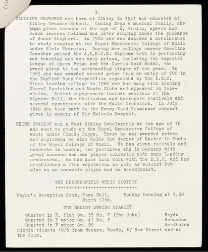 by CAROLINE CRAWSHAW, a young soprano, born in 1941. After