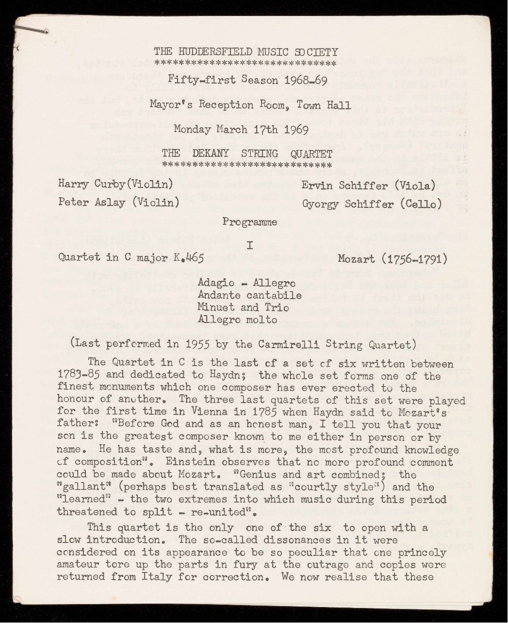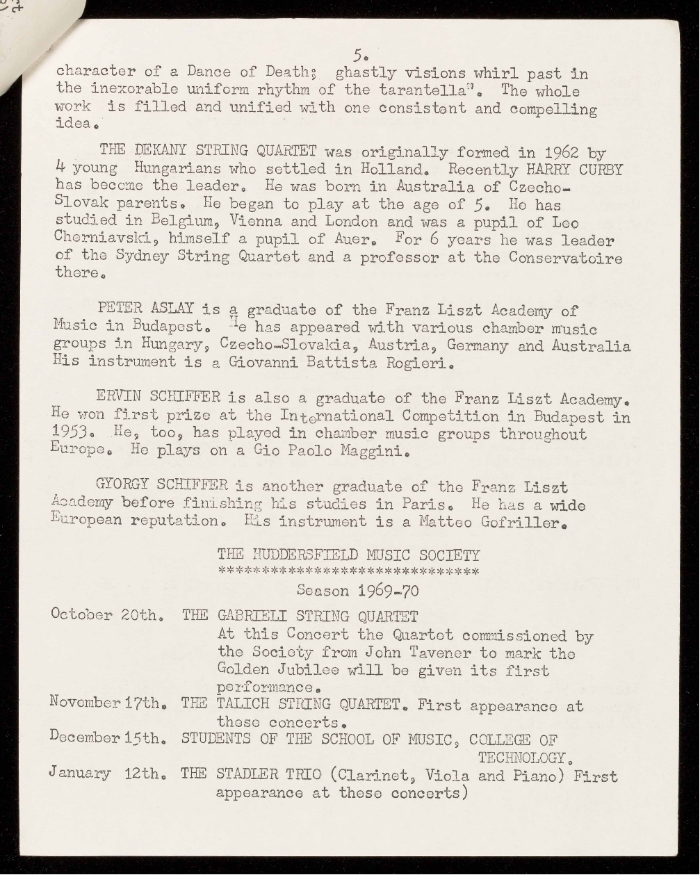 THE DEKANY STRING QUARTET was originally formed in 1962 by