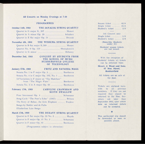 Tickets 5/- (reserved) 2/6 (unreserved) (On Monday nights only,