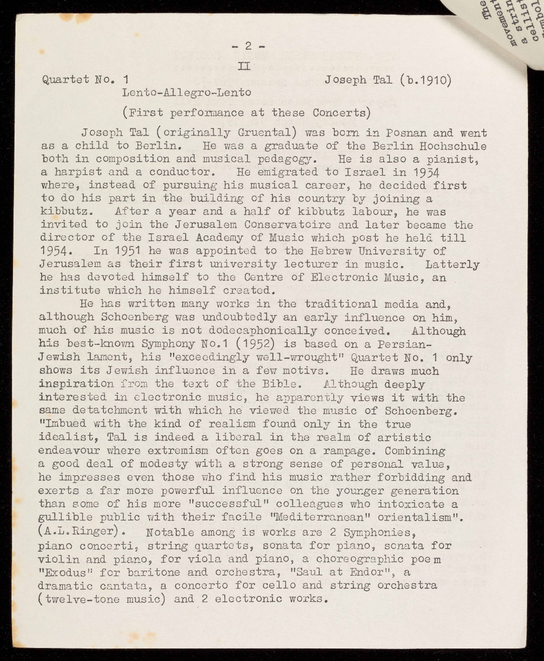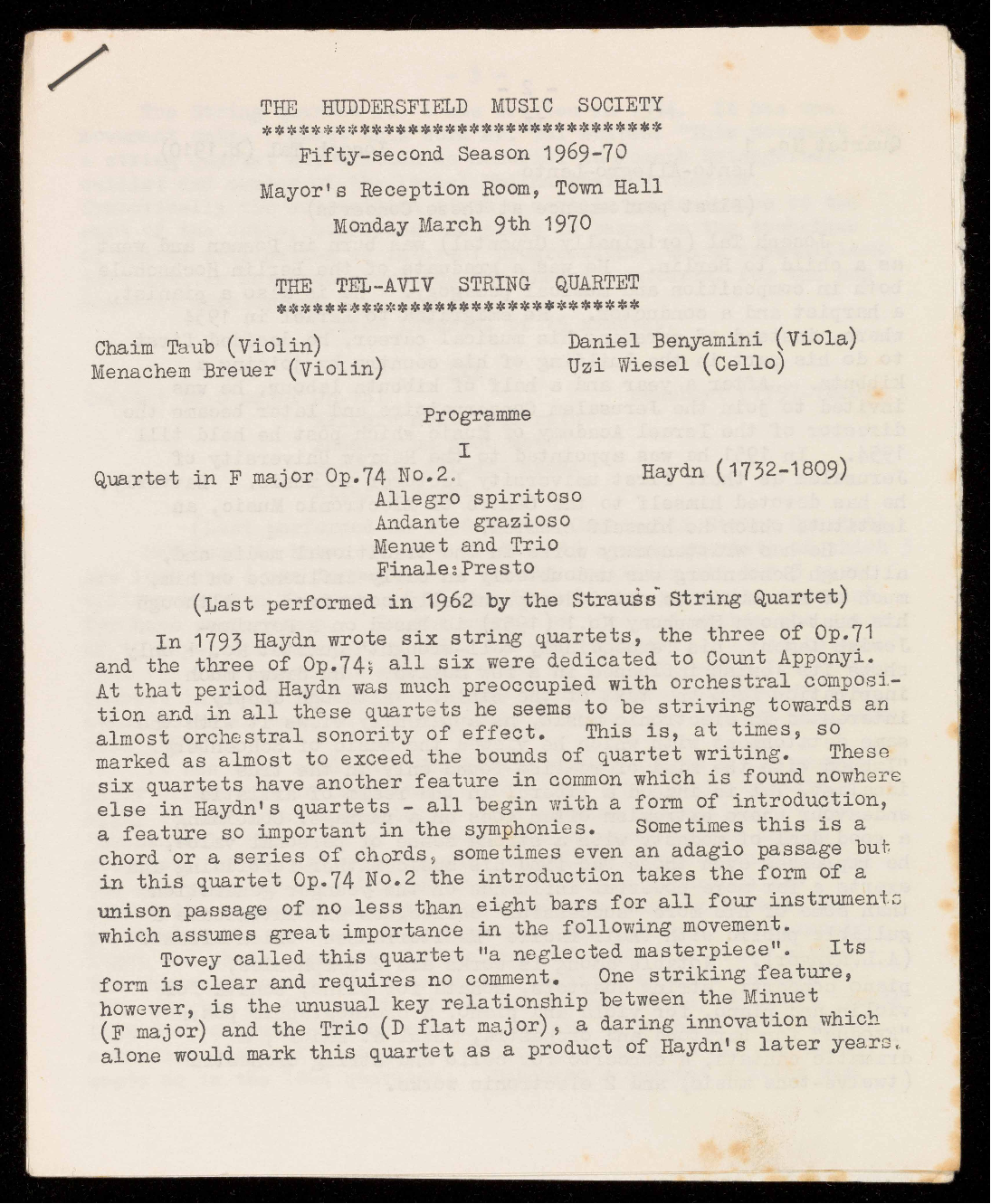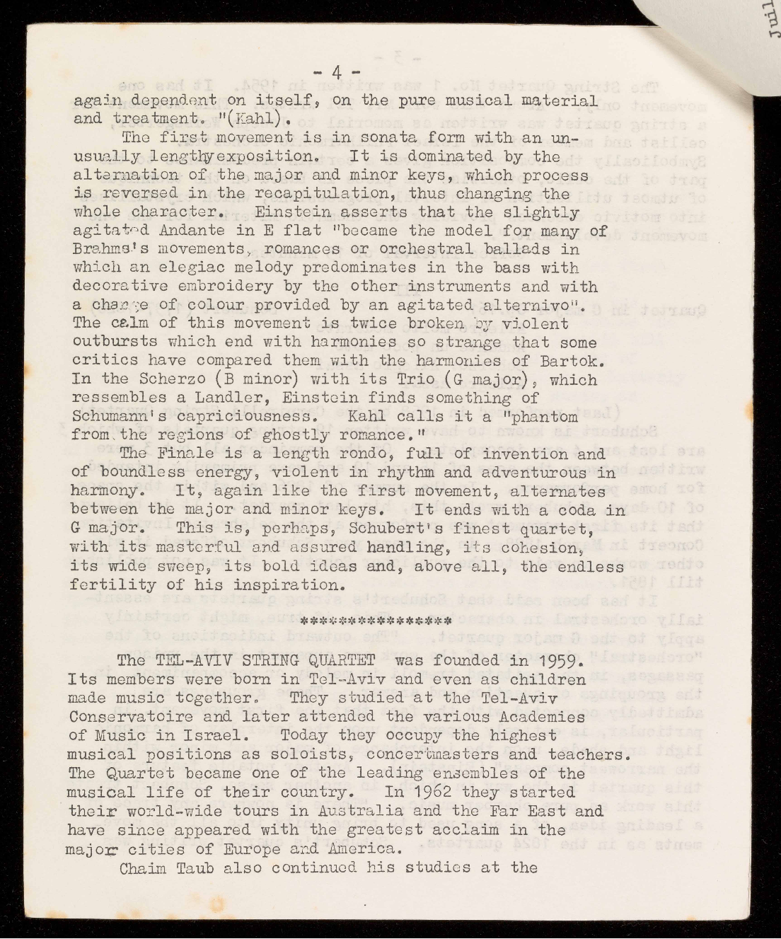 The TEL AVIV STRING QUARTET was founded in 1959.