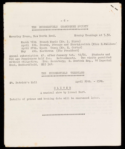 April 6th. Dvorak, Strauss and Shostakovitch (Miss E. Williams)