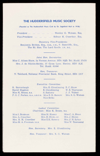 members. The Hon. Secretaries Miss. C. A. Shaw,