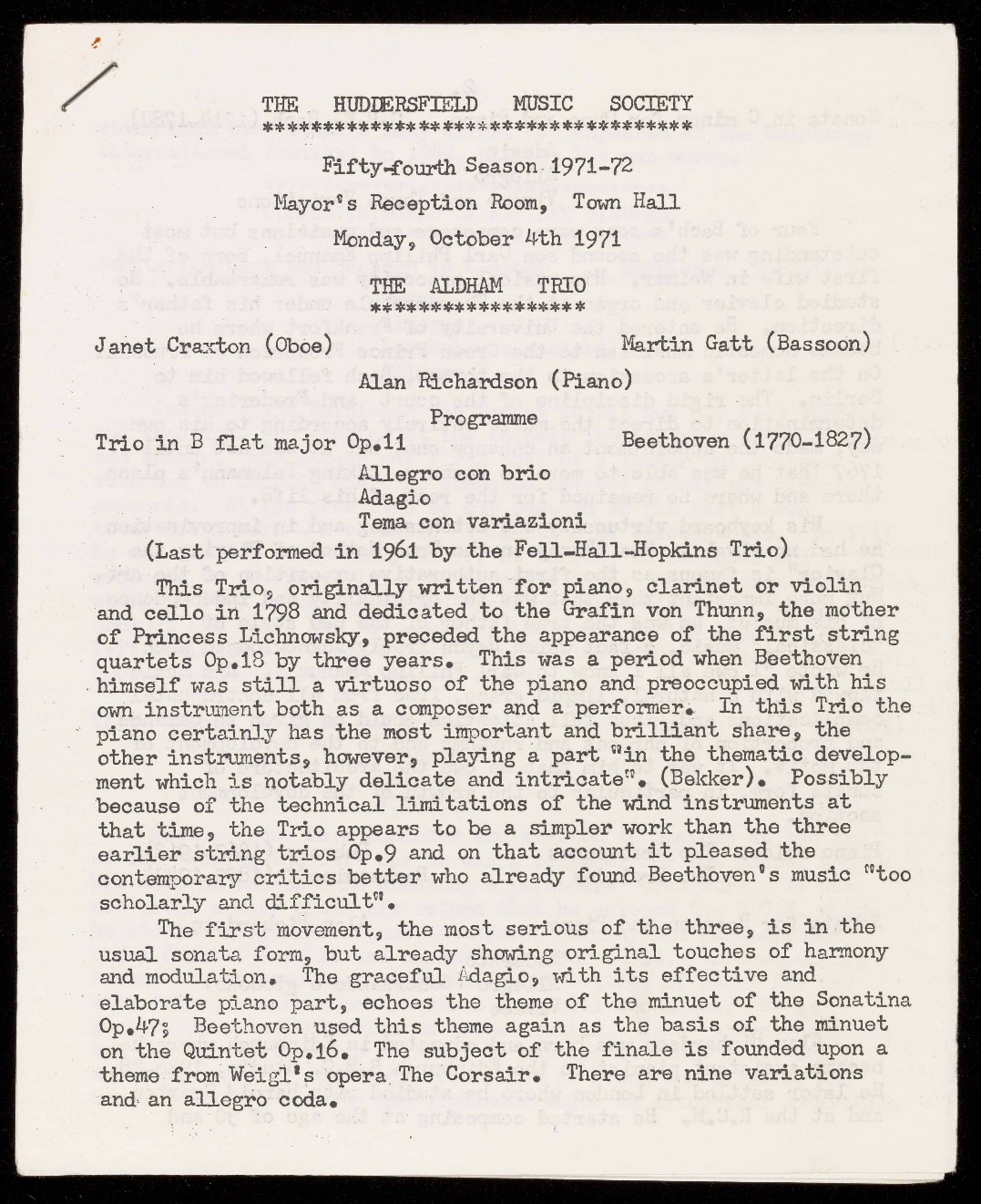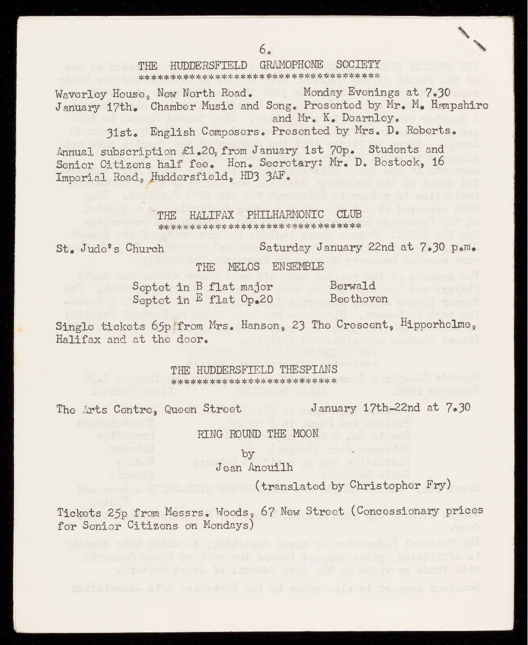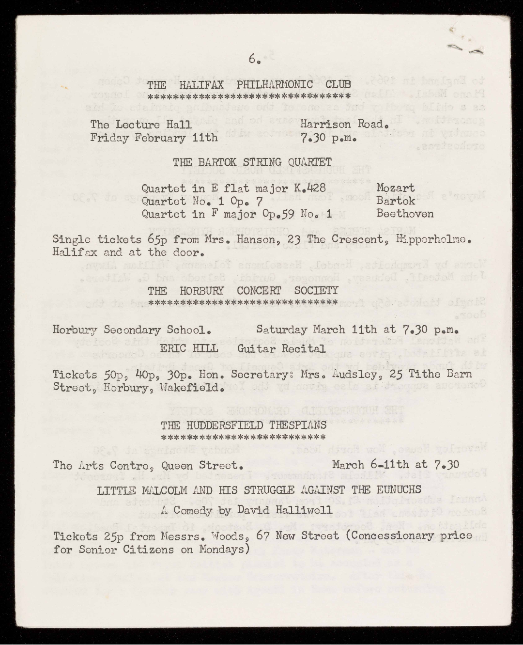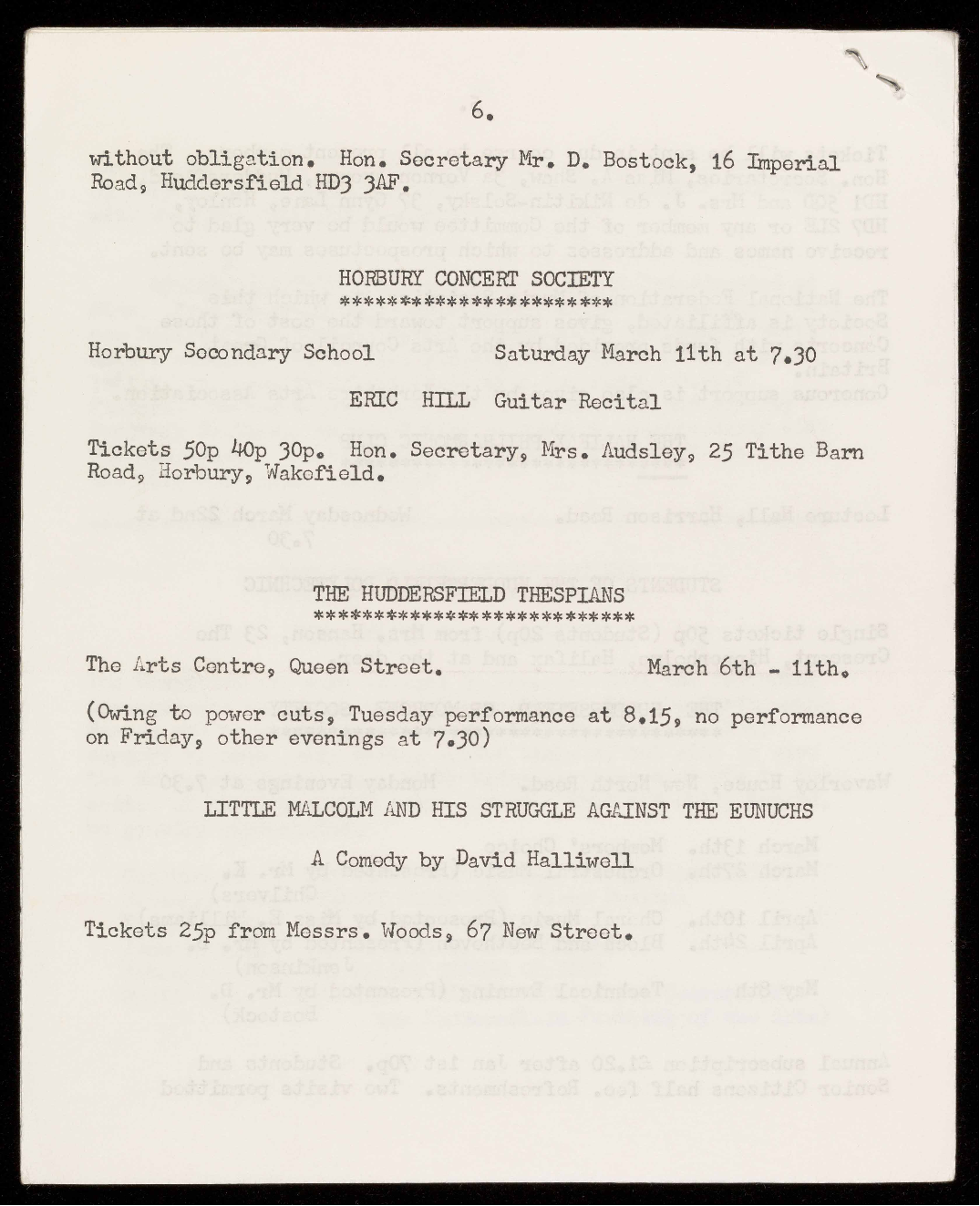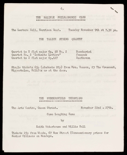 Single tickets 50p (Students 20p) from Mrs. Hanson, 23 The