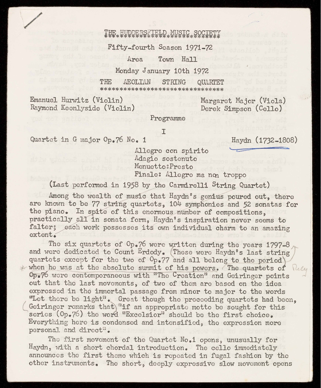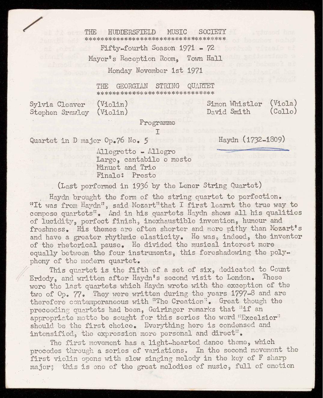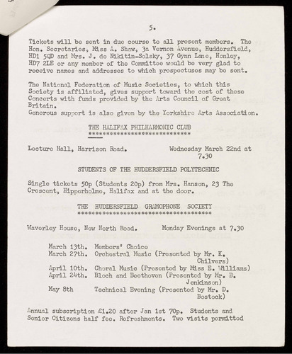HUDDERSFIELD MUSIC SOCIETY