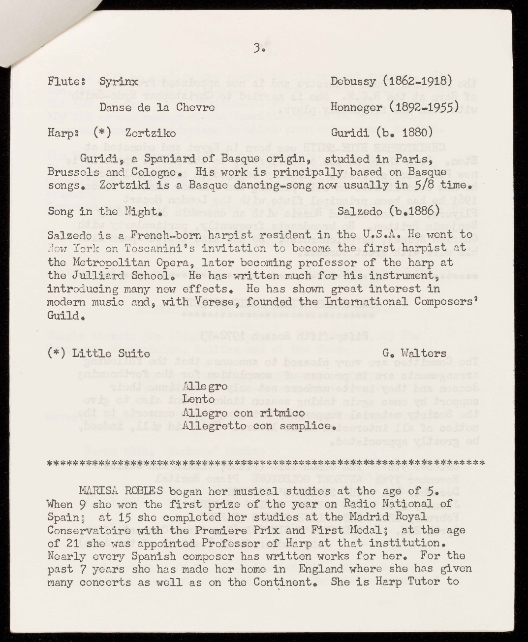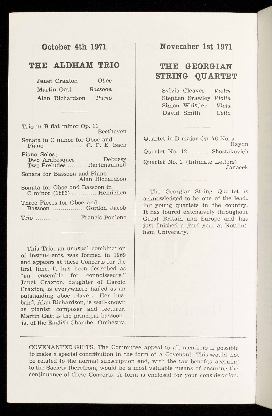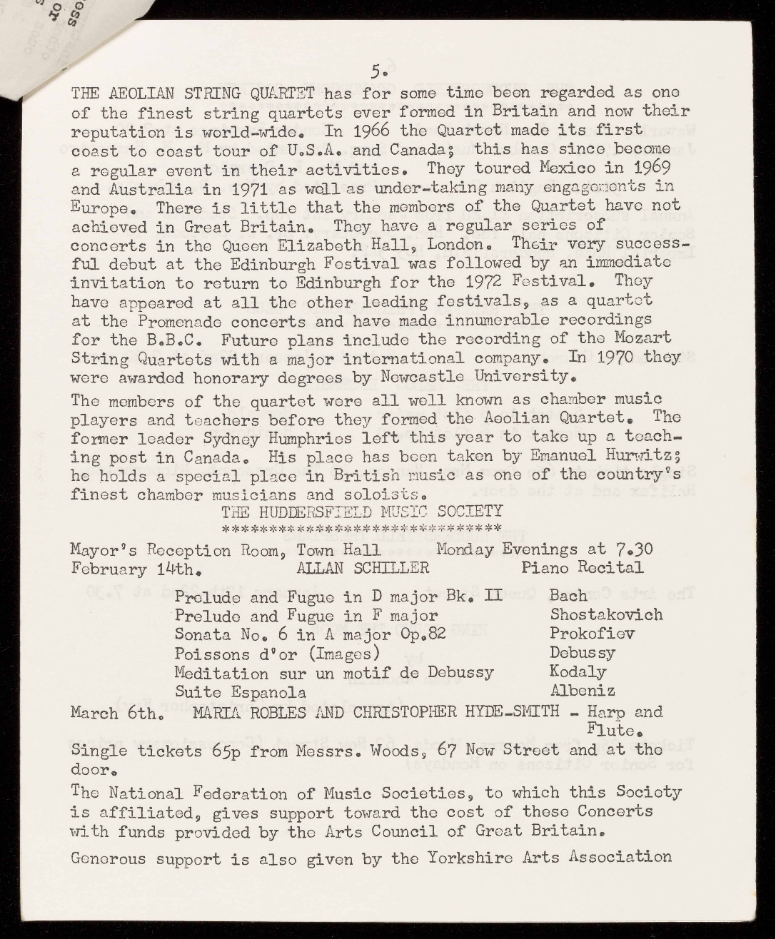 the Society material support by bringing these concerts to the