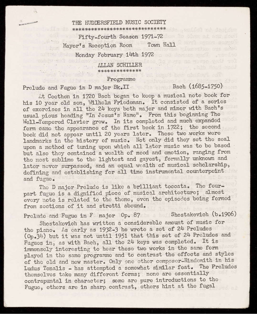54th Season's programmes 1971 - 1972