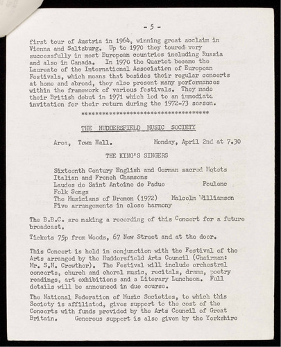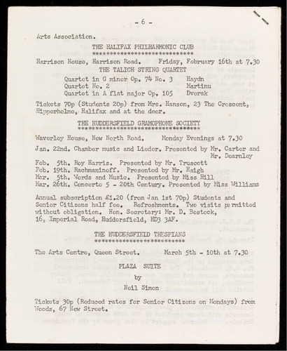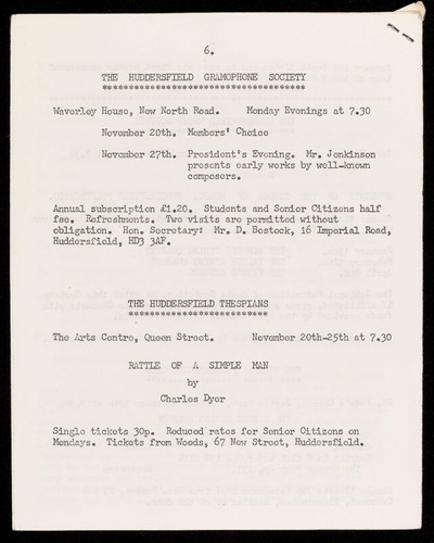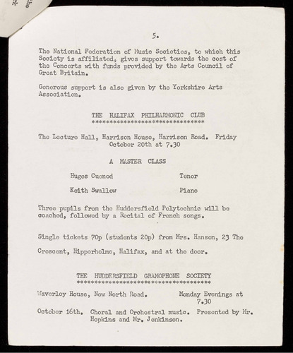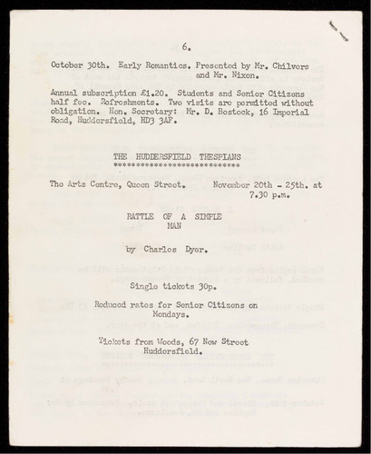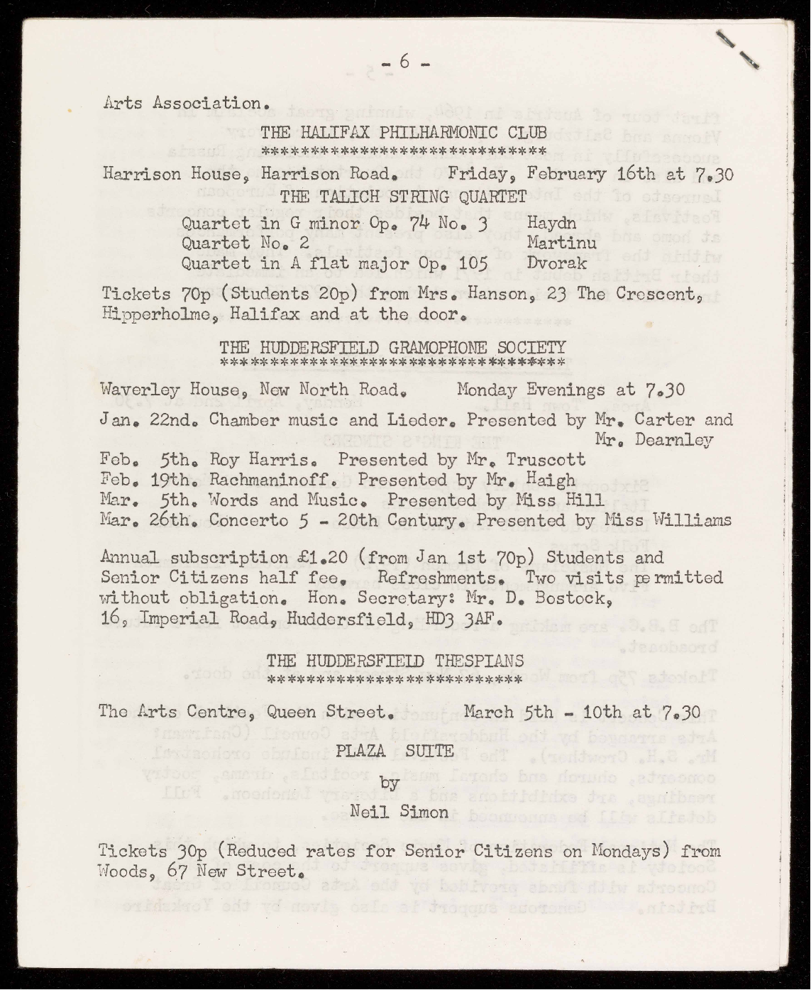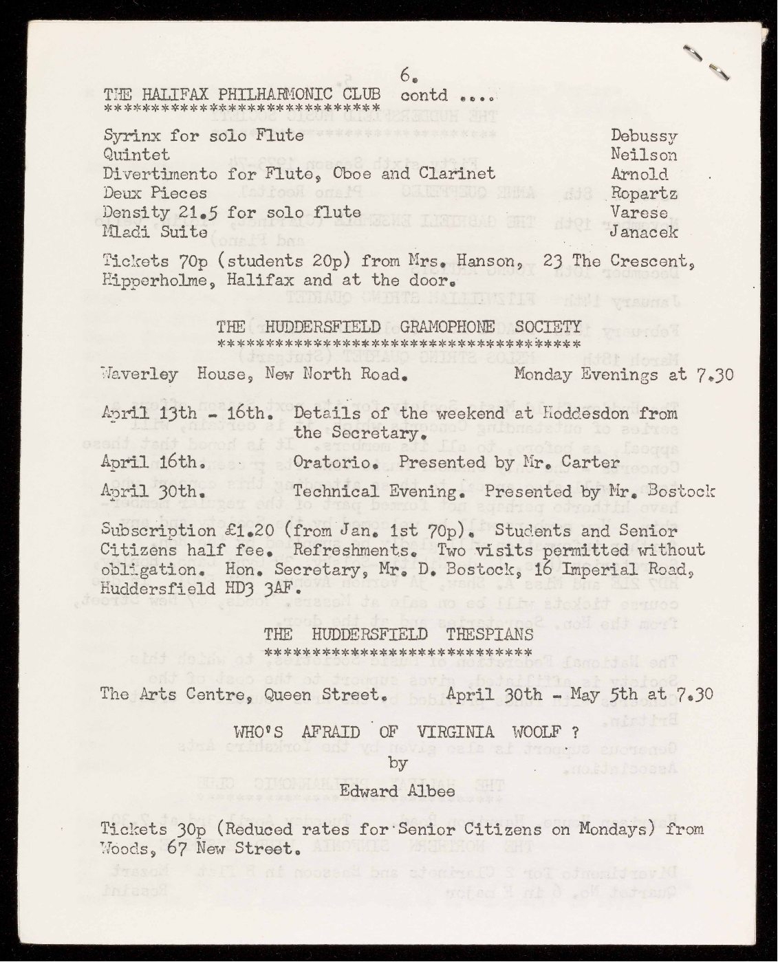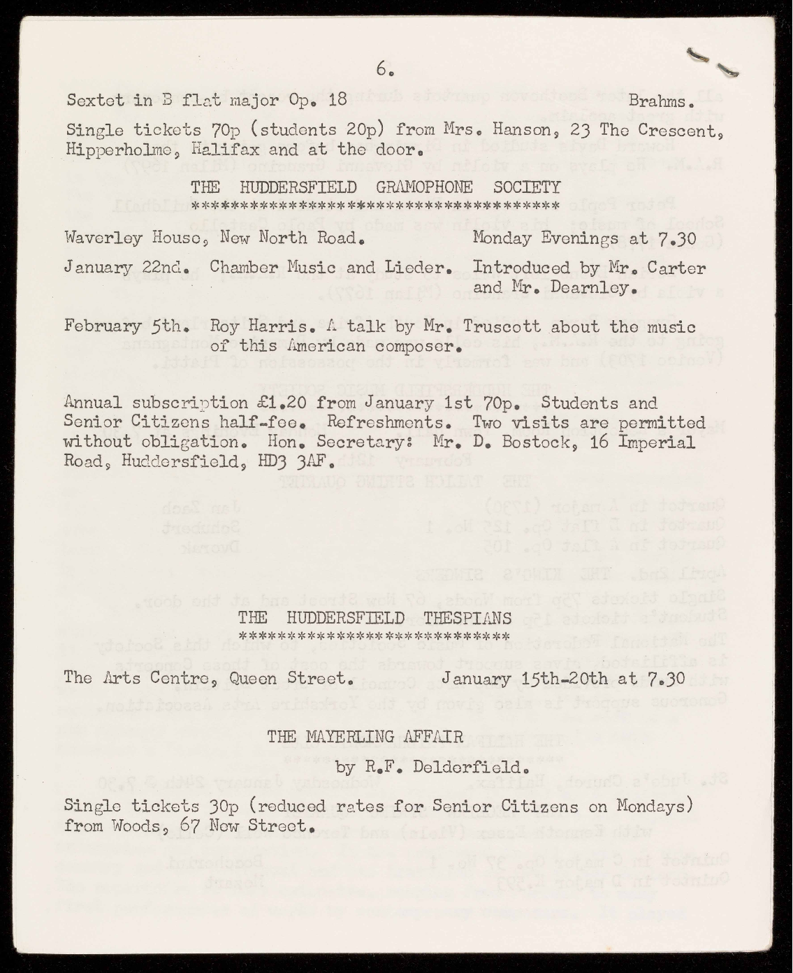 Tickets 70p (students 20p) from Mrs. Hanson, 23 The Crescent,