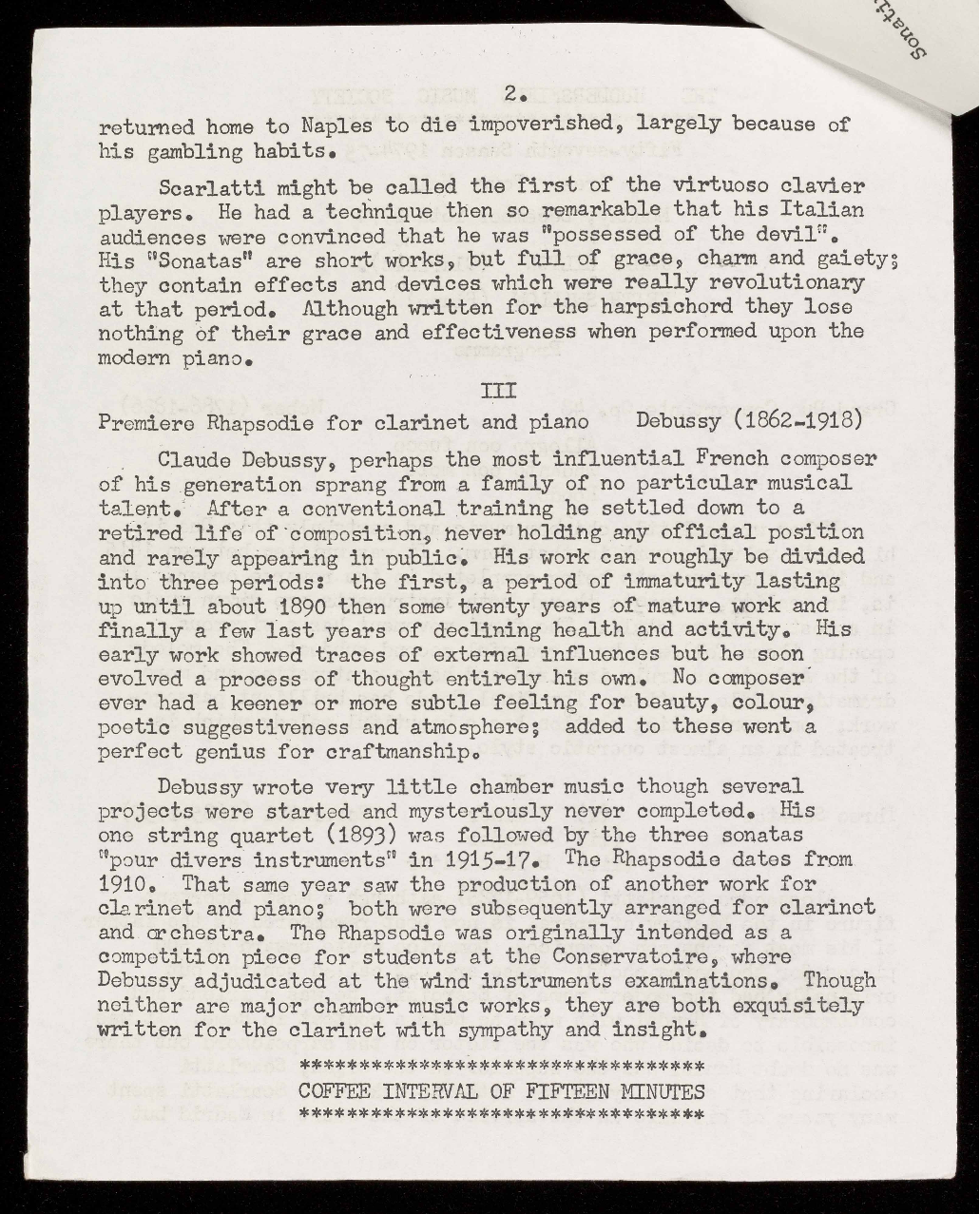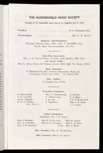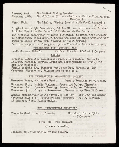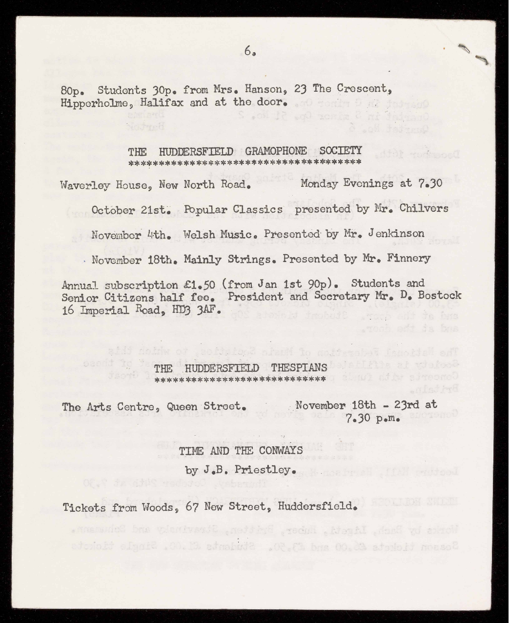 Sonior Citizens half fee. Refreshments. Secretary Mr. D.