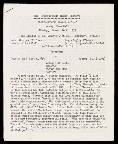 regularly with the Amadeus Quartet in the Quintet repertoire.