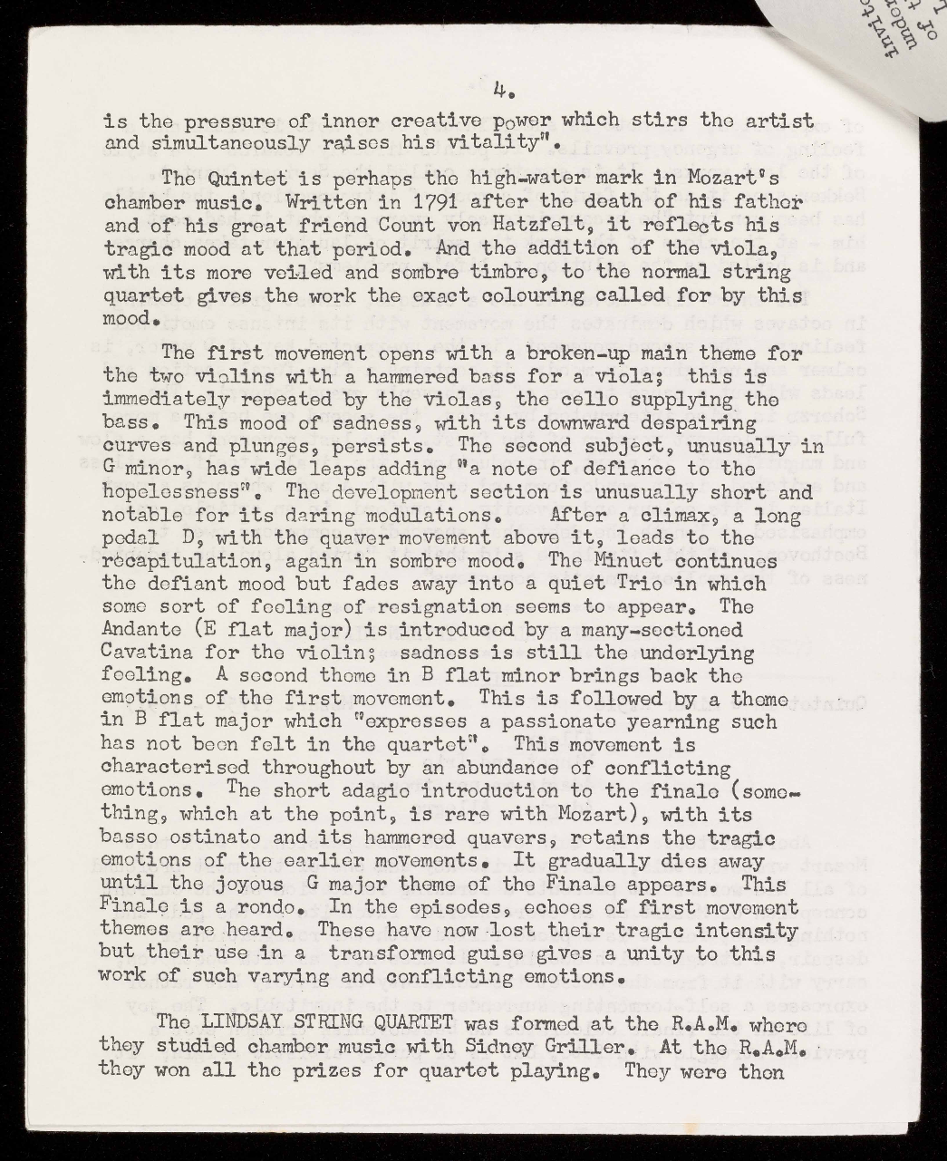 The LINDSAY STRING QUARTET was formed at the R.A.M. whoro