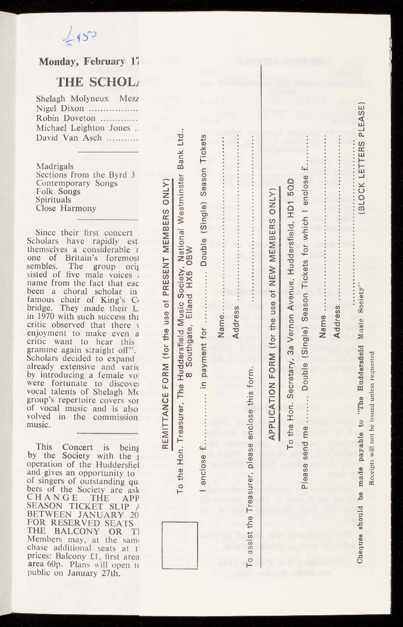 Annual subscription £1.20 (from Jan 1st 70p). Students and
