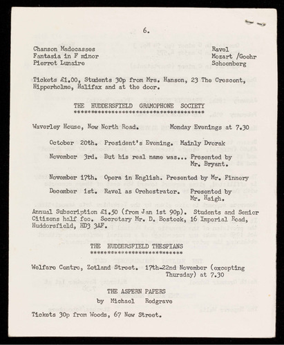 Single tickets £1, Students 30p from Mrs. Hanson,