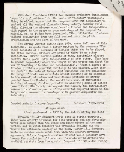 March 14th. LINDSAY STRING QUARTET and THOMAS IGLOY (Cello)