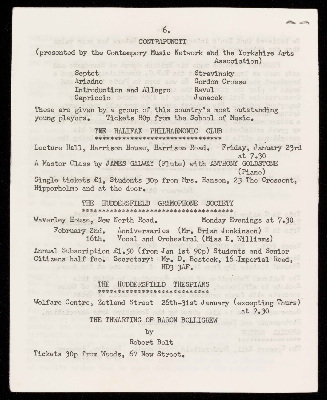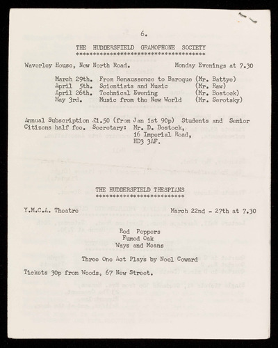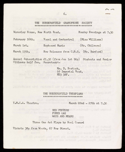 Tickets Balcony £1, area 50p from Woods, 67 New Street.