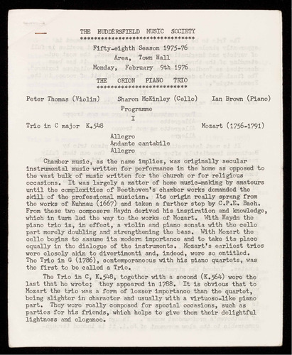 (These notes are copyright by the Northern Sinfonia Concert Society