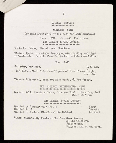 The Huddersfield Arts Council prosent Four Pianos (Eight