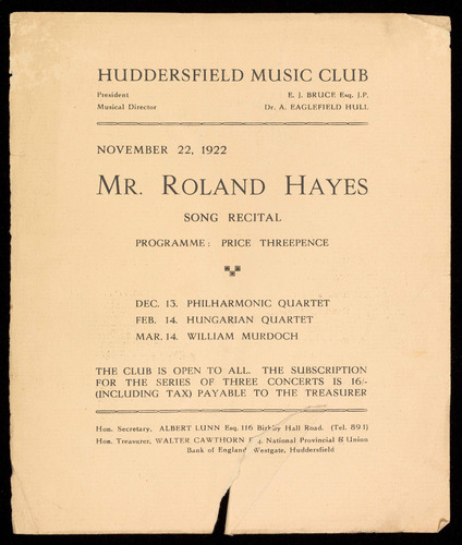 Negro Mr. Roland Hayes. His voice is a genuine tenor (not a forced-up