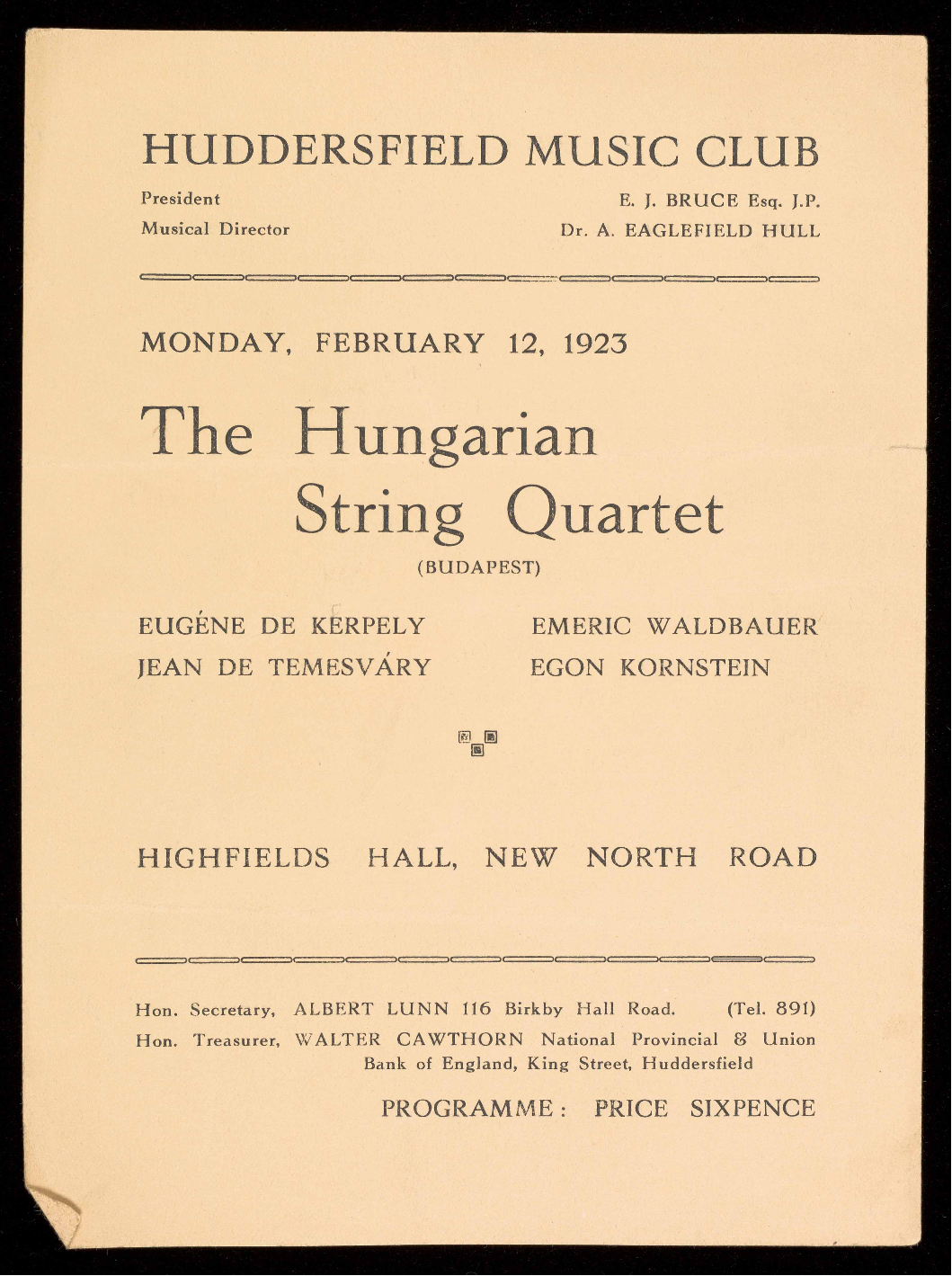 Hon. Secretary, ALBERT LUNN 116 Birkby Hall Road.