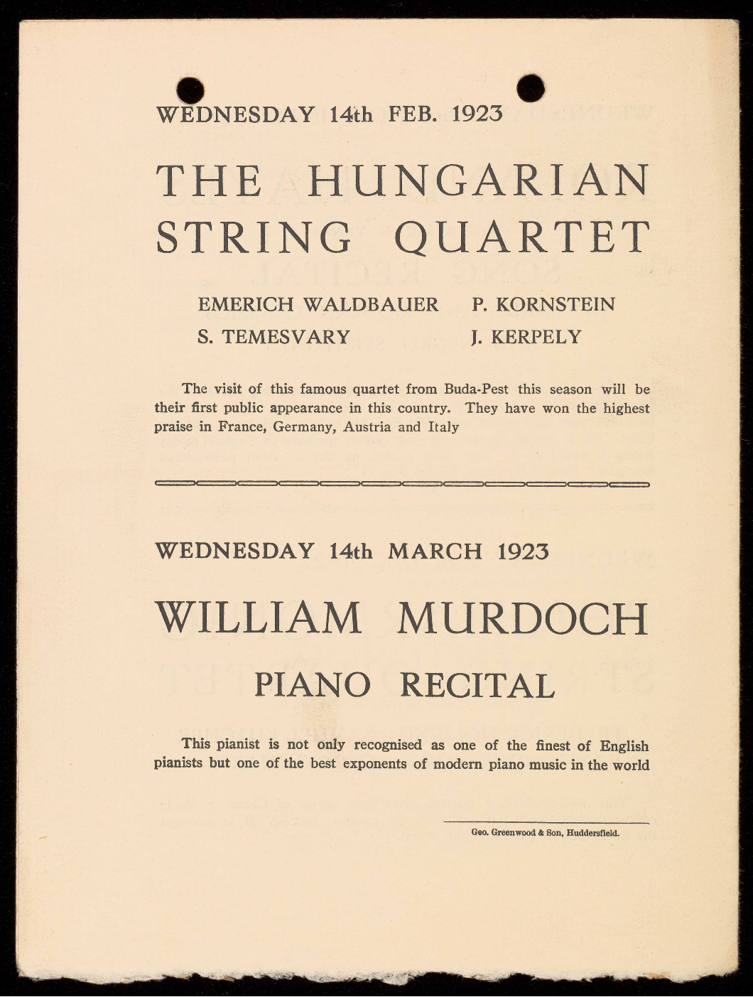 WEDNESDAY 14th FEB. 1923