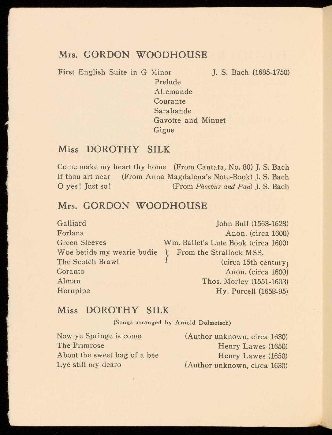 WILL SING AIRS BY BACH AND