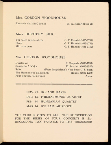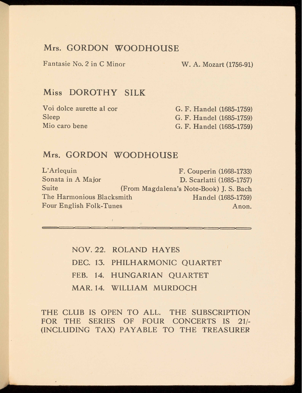 the Club, by providing Chamber Music of the highest