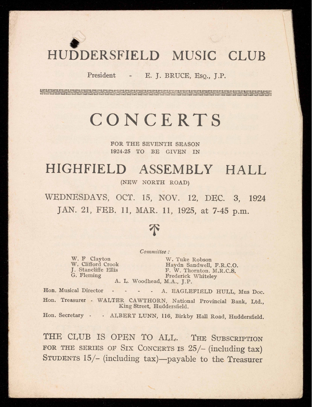 1 The Huddersfield Music Society, HMS 7, Page 1 |