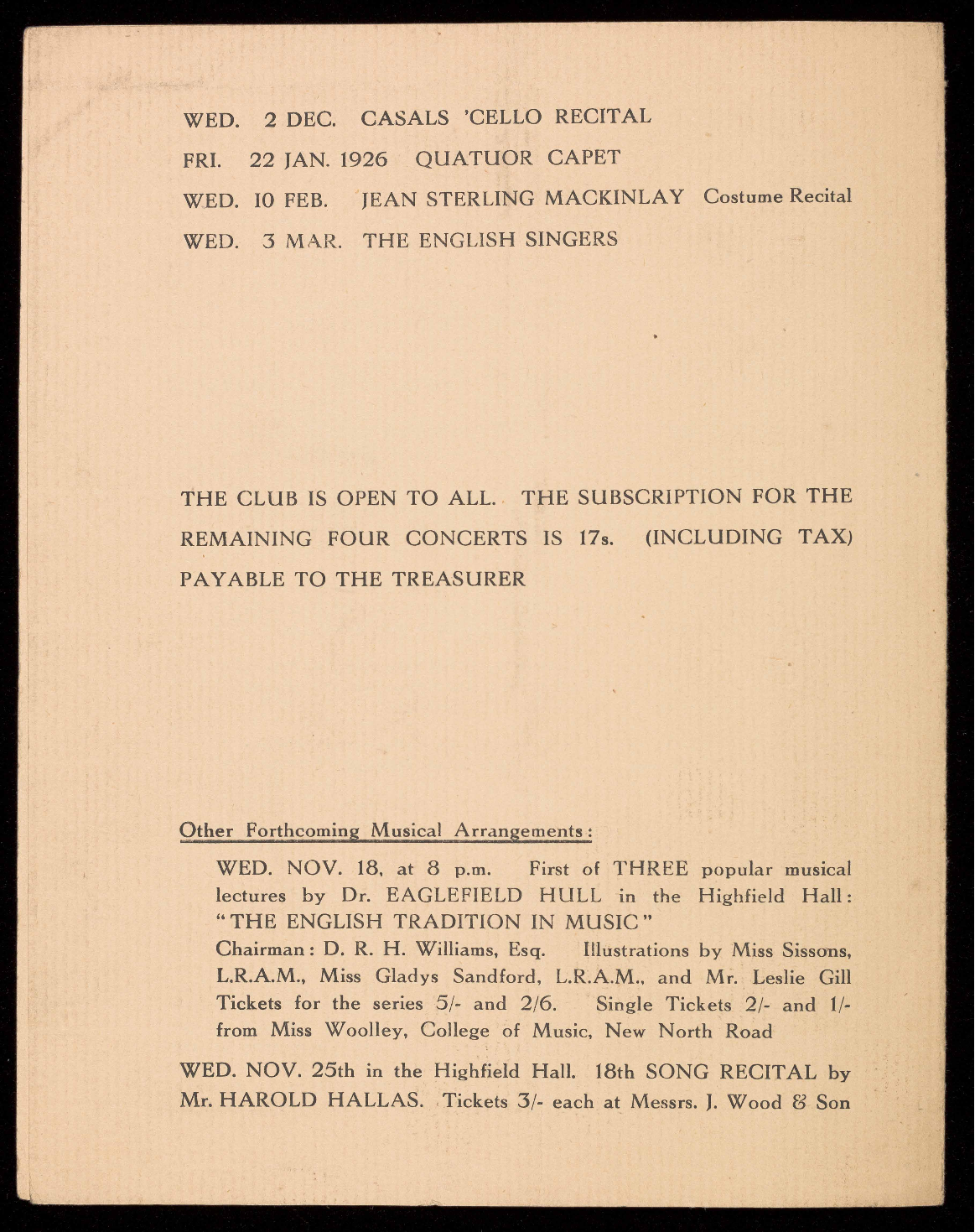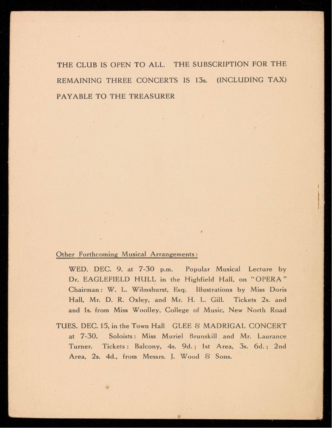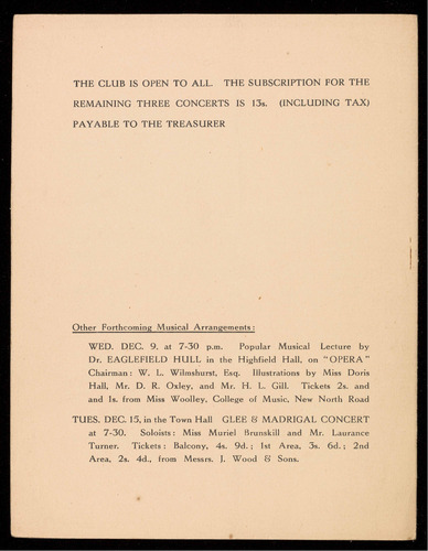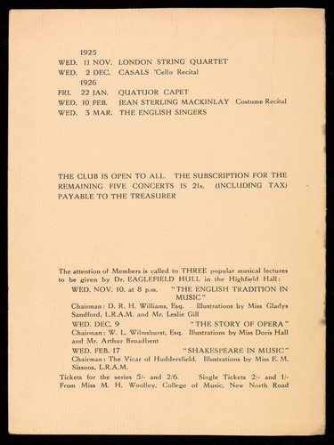 FOR THE SERIES OF SIX CONCERTS IS 25/- (including tax)