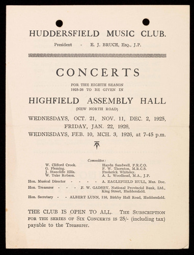 Hon. Secretary - - ALBERT LUNN, 116, Birkby Hall Road, Huddersfield.