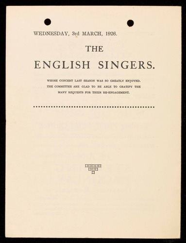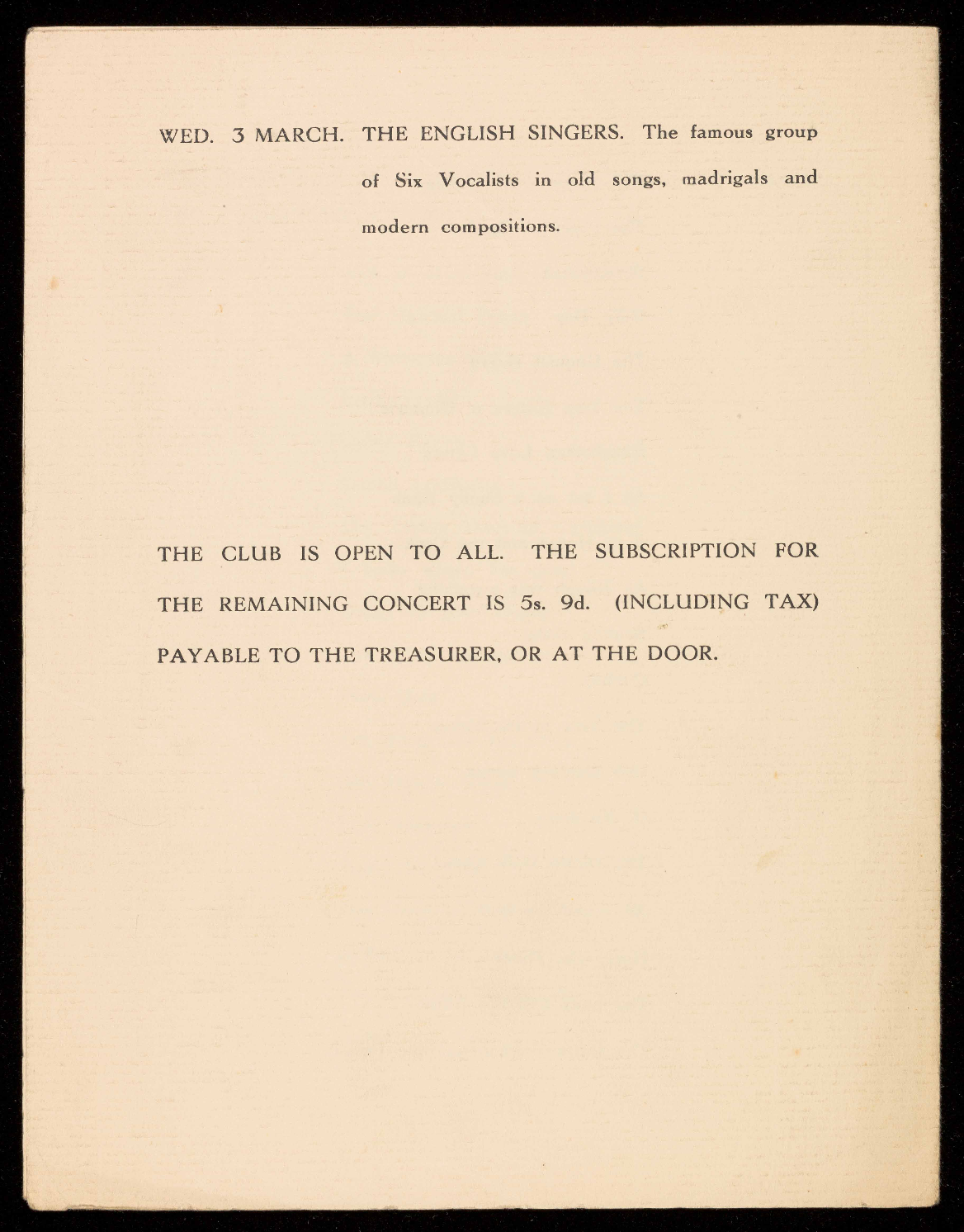 WED. 3 MARCH. THE ENGLISH SINGERS. The famous group