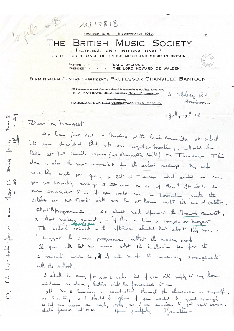 FOR THE FURTHERANCE OF BRITISH MUSIC AND MUSIC IN BRITAIN.