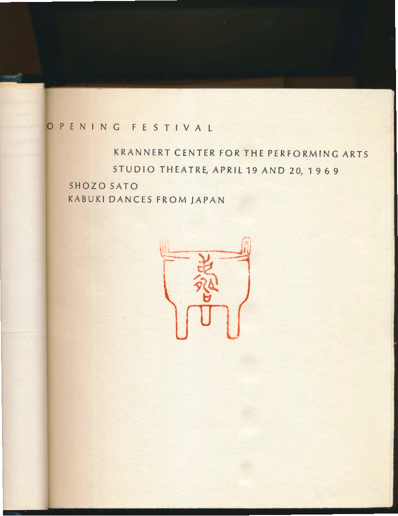 O PENING FESTIVAL KRANNERT CENTER FOR THE PERFORMING ARTS S T U D I O T H EAT R E, A P R I L 1 9 A N D 2 0, 1 9 6 9 SHOZO SATO KABUKI DANCES FROM JAPAN