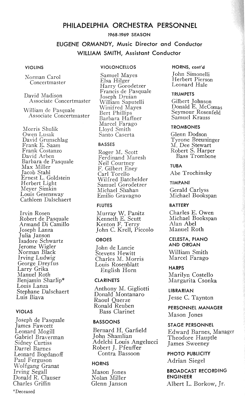 delphia Orchestra in 1926, and was named Concertmaster in 1942. In 1945 he