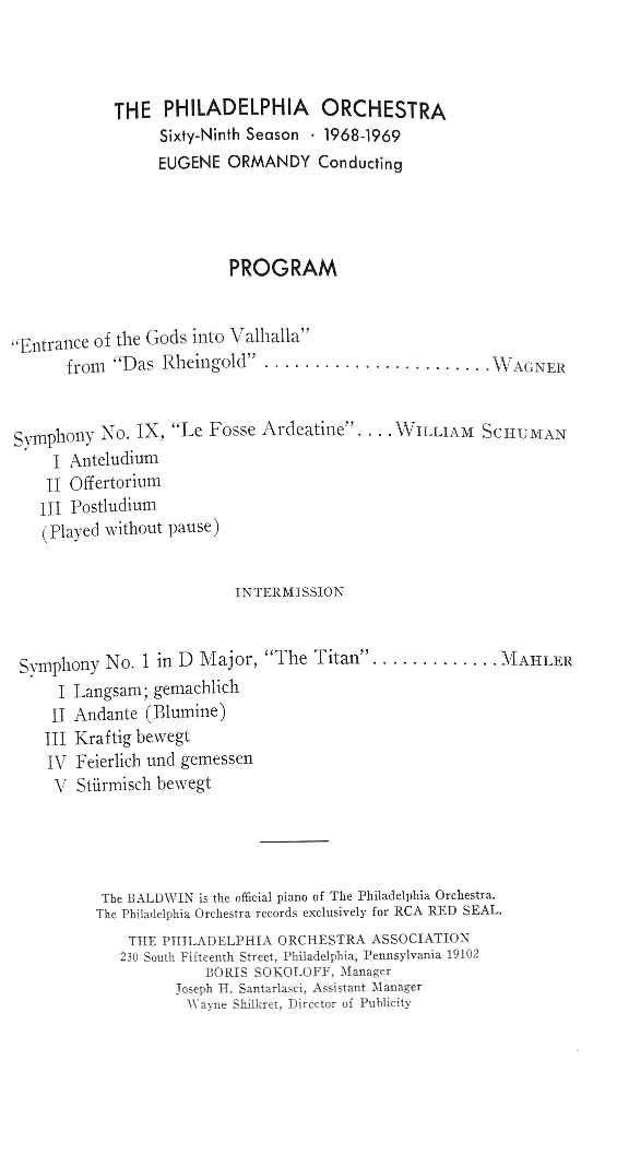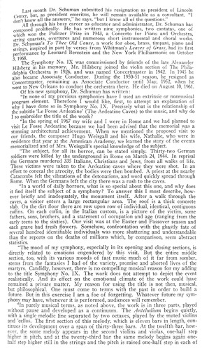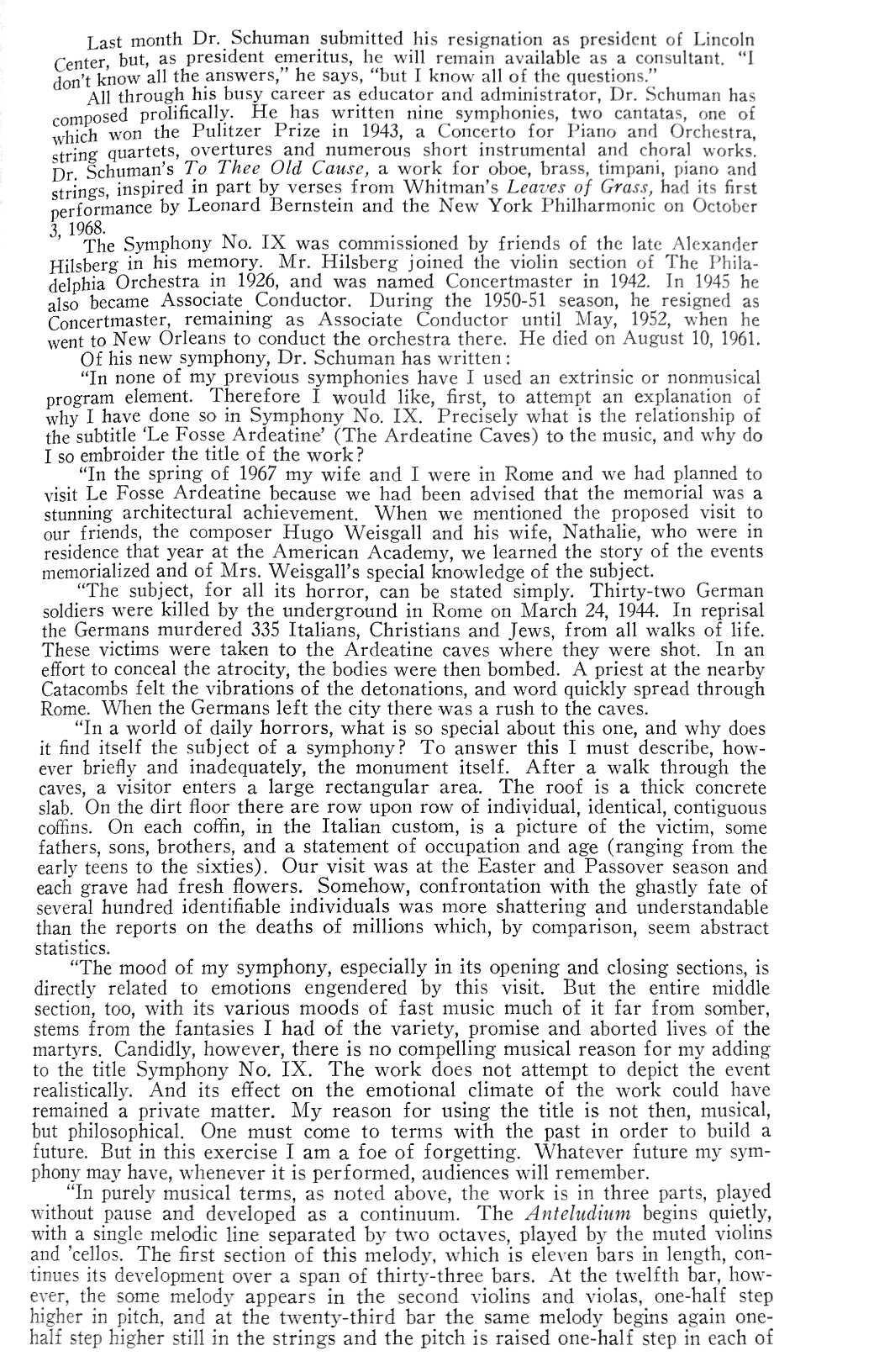 Dr. Schuman's To Thee Old Cause, a work for oboe, brass, timpani, piano and