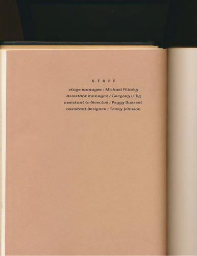 S T A F F stage manageu I Michael Filicsk~ assistant manageu I Guegou~ Lillig assistant to oiuectou I Pegg~ Busseut assistant oesigneu I Teuu~ Johnson
